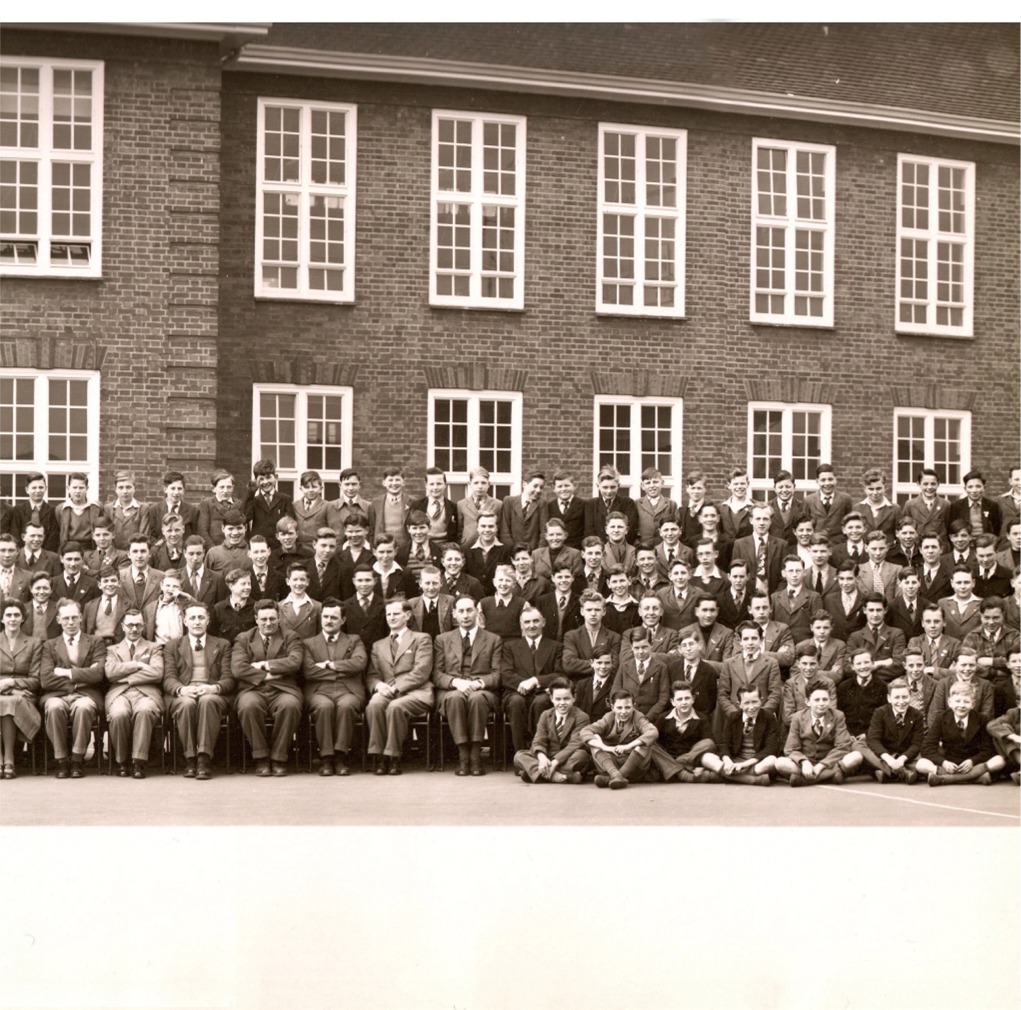 Geoff Beard kindly supplied us with a panoramic view of the School with the all of the Senior Boys who were present that day, also all of the Teachers who were present that day.